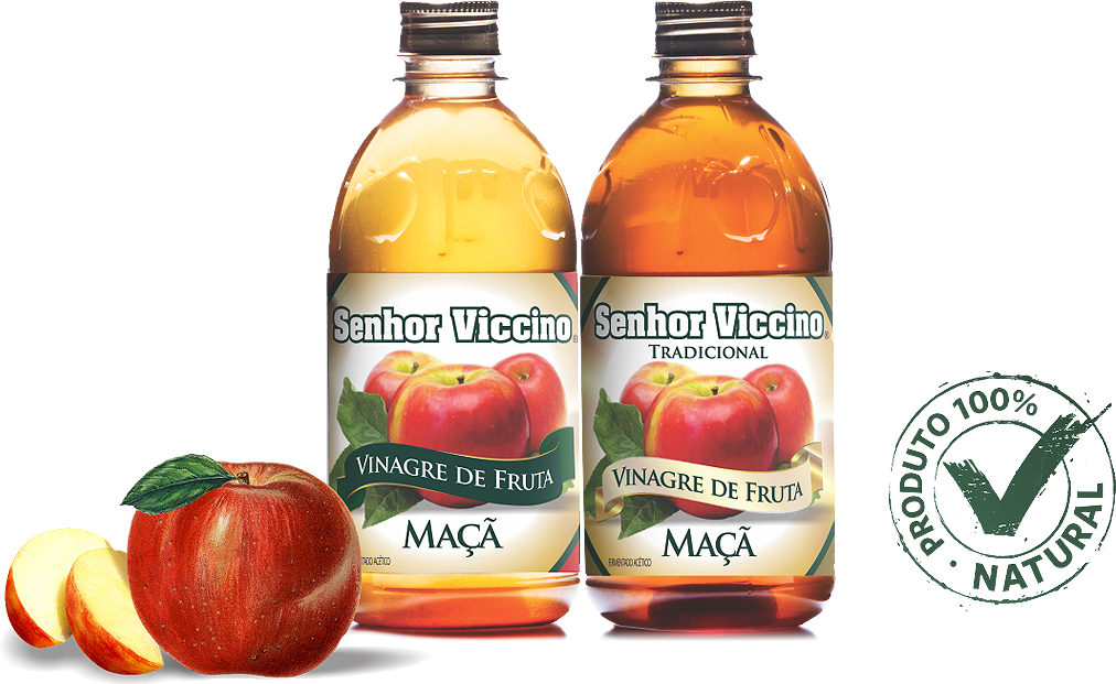 O Vinagre de Maçã Senhor Viccino não é microfiltrado e nem pasteurizado. Ele é 100% natural, possui embalagem especial e é apresentado em garrafa de 500 ml em alta gramatura, rótulo de alta resistência, batoque (dosador), tampa de alumínio dourada e lacre de proteção. Possui acidez de 5%.